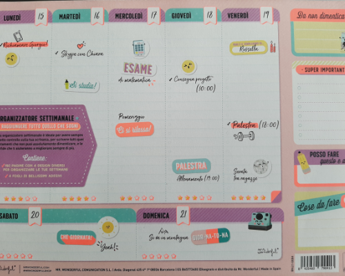 Ho l’abitudine di pianificare almeno una volta a settimana, fisso i miei obiettivi, faccio brainstorming per dare spazio alle nuove idee e spesso procuro qualche capello bianco alla mia socia che forse non ne può più di tutte le volte in cui dico: “Sai, ho pensato che potremmo fare anche…”